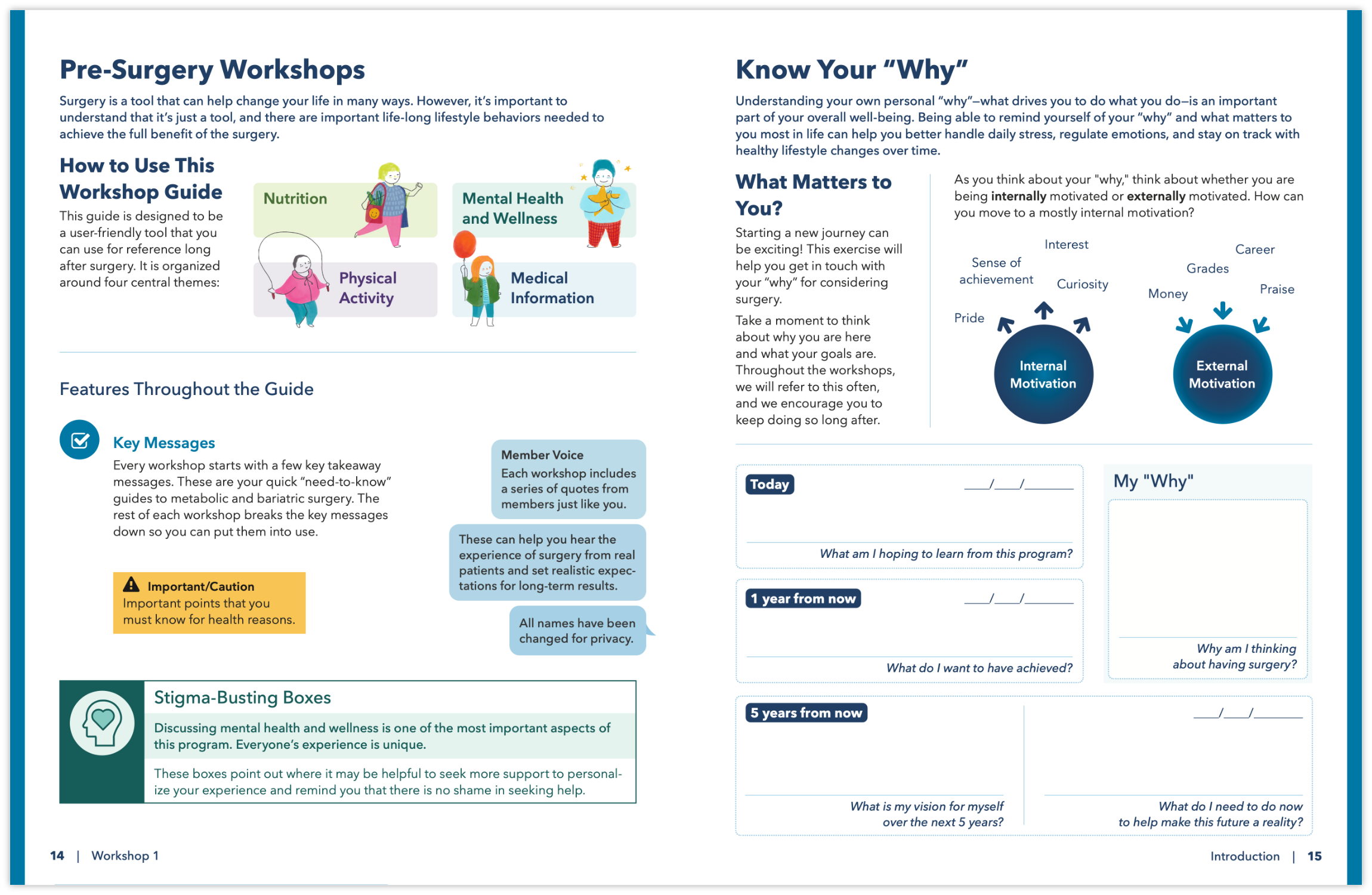graphic design, illustrations, and human-centred design for a ten-session bariatric surgery workshop series at kaiser permanente center for healthy living (southern california)